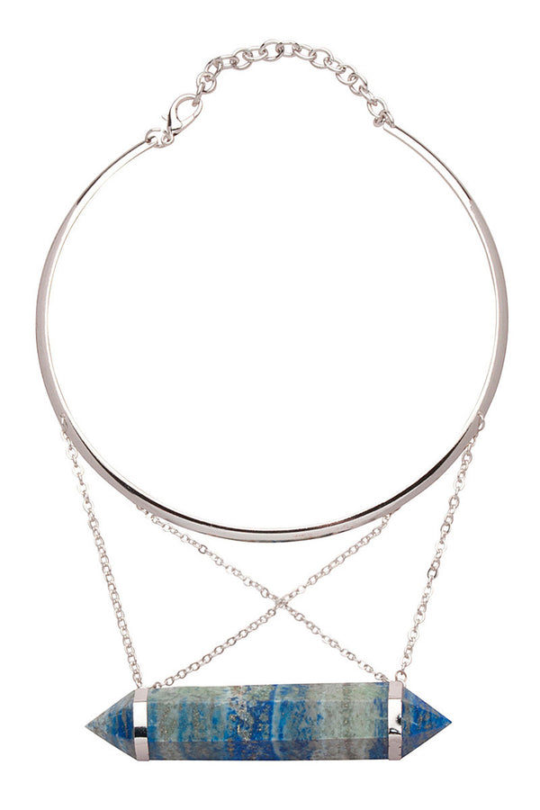 Featuring a large statement stone and crossover chain detailing, this silver-toned Crystall Choker is a standout piece.