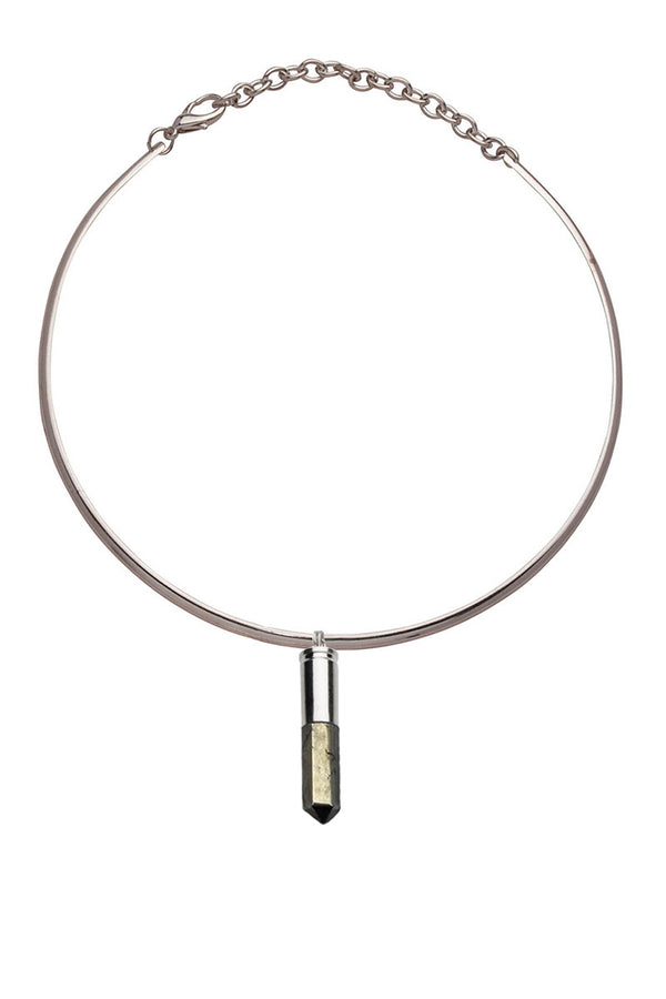 This choker necklace features our silver-toned bullet crystal pendant and will instantly add a touch of luxe to your outfit. Pyrite is the stone for bringing in success, money and abundance.